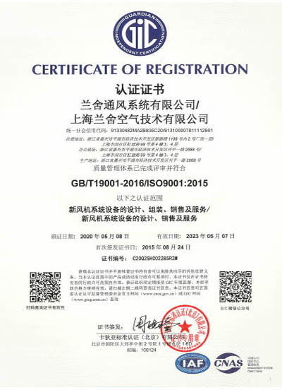 ISO9001质量管理体系认证证书