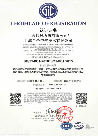 ISO14001环境管理体系认证证书