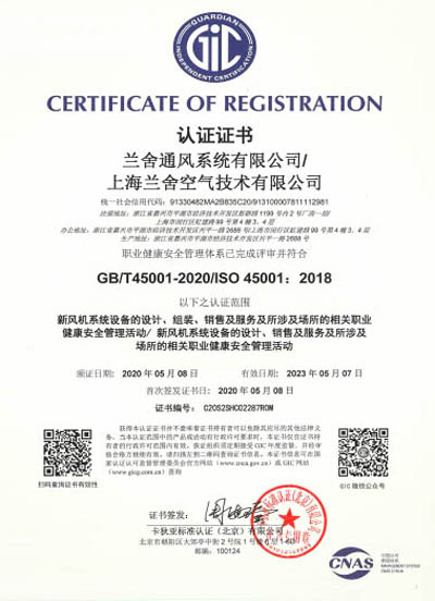 ISO45001职业健康安全管理体系认证证书