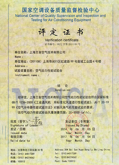 空气动力性能试验台评定证书